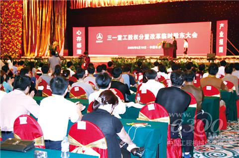 在此之前,国有股、法人股、普通股“同股不同权,同股不同利”,被普遍认为是困扰股市发展的头号难题,此即“股权分置”问题。所谓“股改”,就是让国有股和法人股全部像普通股一样,参与市场流通,通过全流通实现同股同权,同股同利。三一重工的股改成功亦是当年资本市场的最大事件,其以“吃螃蟹”的先锋姿态,开启了中国资本市场的全流通时代。对此,中国证监会原主席尚福林评价:“作为中国股权分置改革的第一家试点企业,三一重工积极参与、推动改革所表现出来的勇气和真诚,值得肯定。”