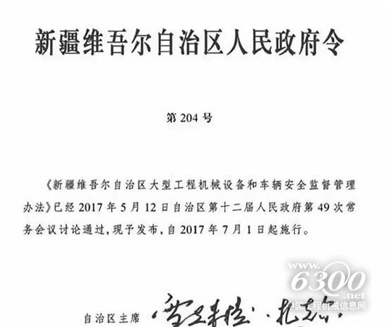 新疆工程机械监管令