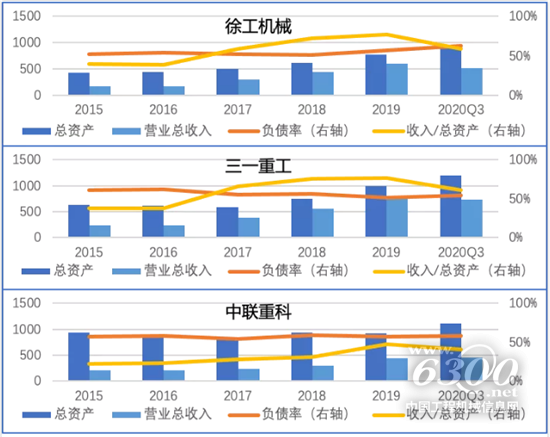 中联重科在2015年的资产、收入、利润在三家之中均处于更为有利的位置,但2017年前后的巨额减值和战略犹疑,公司业绩缺乏长期成长性。