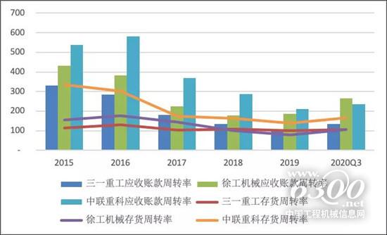 企业的存货周转率:中联重科最高,三一重工和徐工机械基本持平。