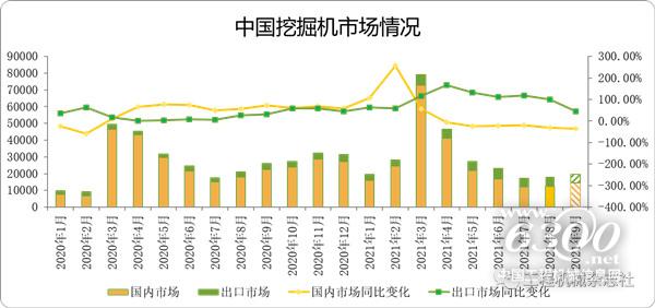 9月挖掘机销量预计1.95万台左右。经草根调查和市场研究,CME预估2021年9月挖掘机(含出口)销量19500台左右,同比增速-25%左右。