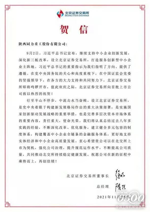 陕西同力重工在北交所上市,11月15日正式开市交易