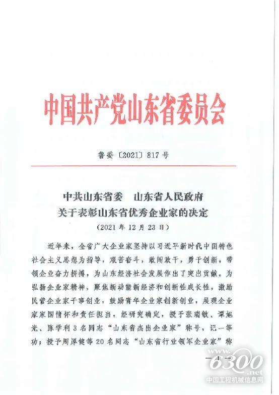 近日,山东省委、省政府发布了关于表彰山东省优秀企业家的决定,临工集团董事长王志中荣获“山东省行业领军企业家”称号,记一等功。