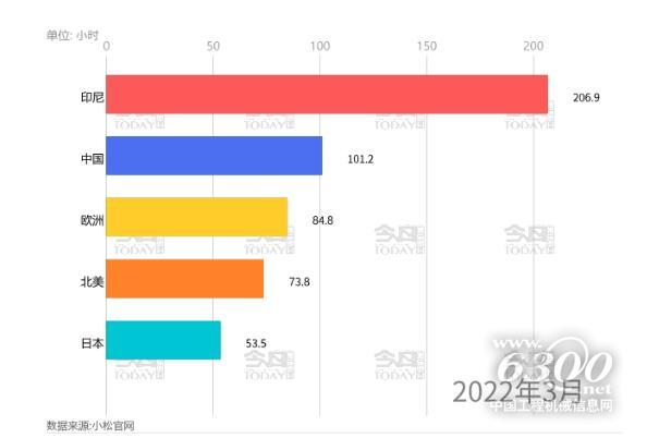 3月份小松挖机指数:中国开工小时数为101.2 同比下降16.9%