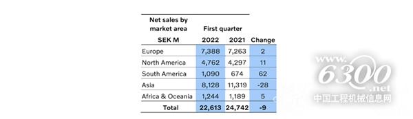 5. 沃尔沃建筑设备一季度销售额同比下降9% 中国市场同比下降33%;