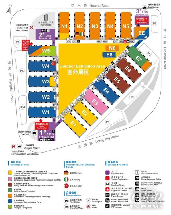 乘坐地铁2/7号线,至龙阳路站9号口出,步行10分钟,直达展馆1号入口厅,通往E1及W1馆