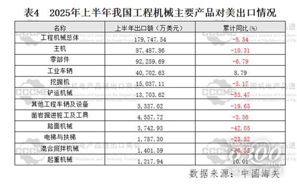 3.上半年我国工程机械对美出口同比下降8.5%;